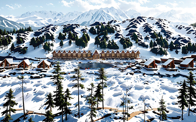 Efor Group undertook the MEP engineering and infrastructure systems design of the Ala Arça hotel project, which is being built in a high mountainous area within the Ala Arça National Park, located approximately 40 km south of Bishkek, the capital of Kyrgyzstan. The total area of 66.800m2 includes 1 3-storey 5 star hotel with 120 rooms, 22 bungalows, 15 balloon houses, 1 restaurant, 4 ornamental pools and a 2km cable car for access to the resort.